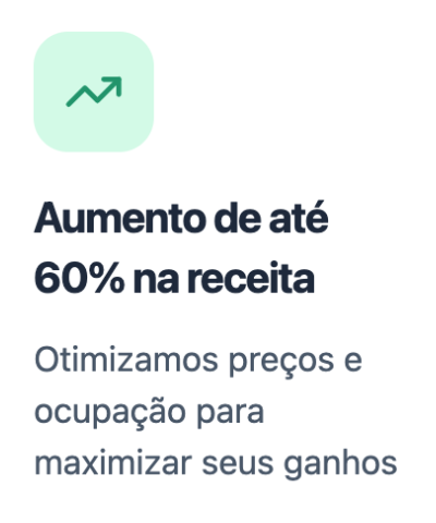 Precificação Inteligente e Otimizada. Utilizamos análise de mercado, sazonalidade e eventos locais para definir a melhor diária, garantindo a maior taxa de ocupação e rendimento possível, superando a gestão amadora em até 80%.