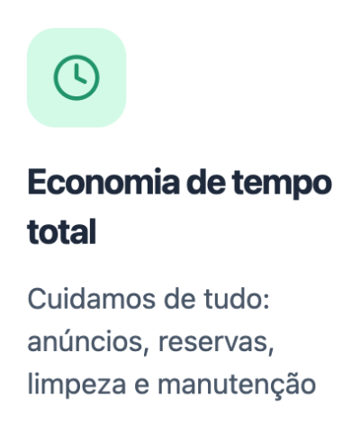Limpeza e Manutenção Profissionais. Coordenamos a limpeza padronizada, a gestão de enxoval (roupa de cama/banho) e a manutenção preventiva/corretiva rápida entre as estadias. Seu imóvel está sempre impecável e pronto para o próximo hóspede.