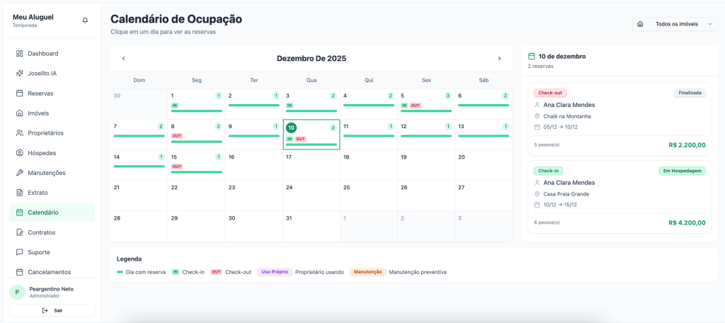 Você tem acesso total ao calendário do seu imóvel em tempo real: datas, número de hóspedes, valor de cada reserva e status atualizado. Tudo centralizado em nosso sistema, garantindo clareza, controle e confiança em cada etapa da gestão.