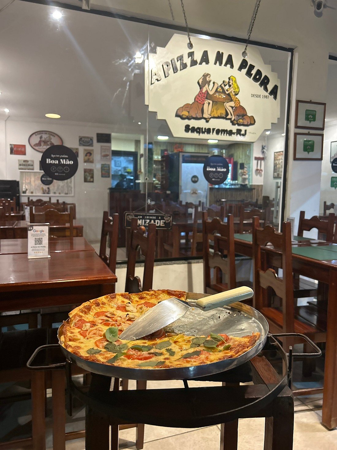 A Pizza na Pedra é uma pizzaria em Itaúna, Saquarema, conhecida por servir pizzas com massa crocante assadas em pedra. O restaurante, que tem quase 40 anos de tradição, também oferece delivery. Possui uma ótima avaliação de 4,8 estrelas no Google, baseada em 213 avaliações. Frequentemente elogiada pela excelente pizza, feita com ingredientes de qualidade.