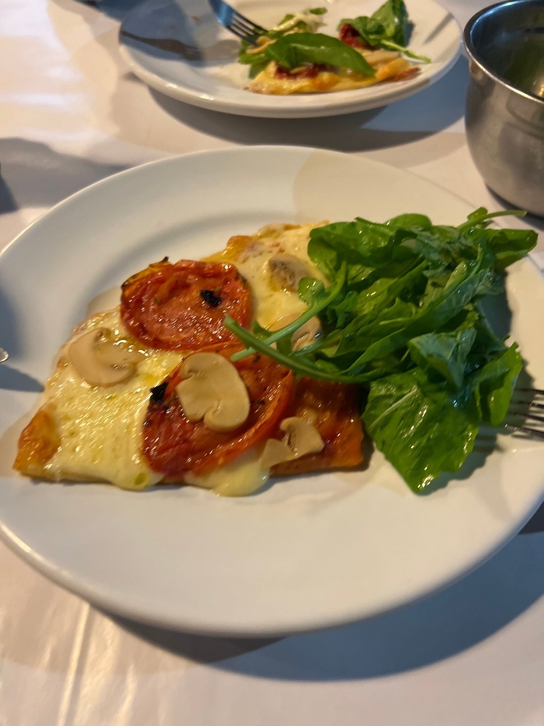 A massa fina e crocante da pizza na pedra é um destaque.